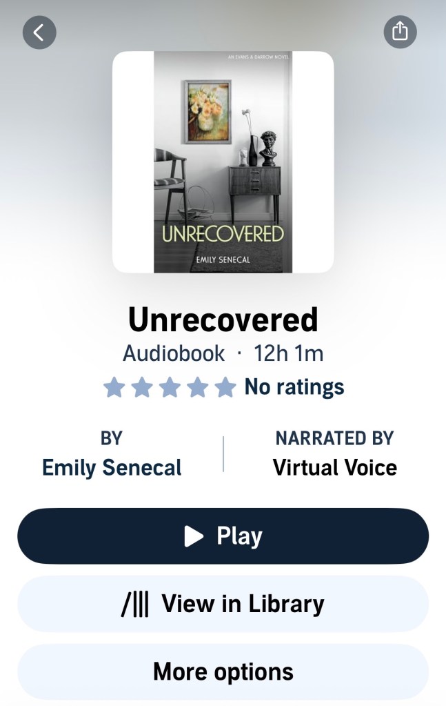 For any authors considering this format, or any readers curious about virtual voice narration of audiobooks, I would say — at least at this point in my experience — that in spite of some shortcomings, it’s an accessible and effective solution.